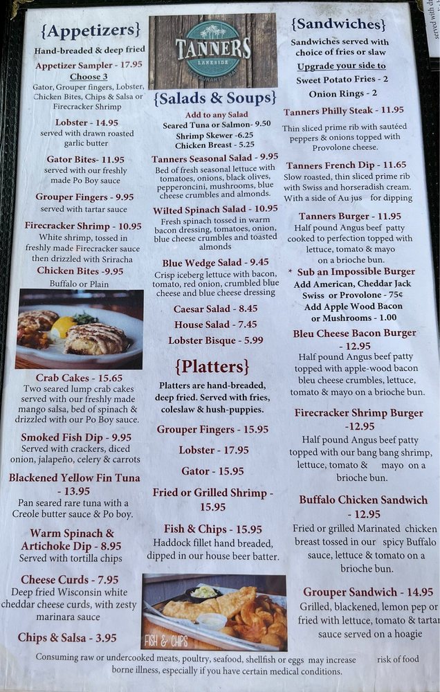 If you're looking for a lakeside dining experience in Winter Haven, FL, Tanners Lakeside is the place to be. This restaurant offers a diverse menu featuring sandwiches, seafood, and bar options, with many vegetarian choices available. The atmosphere is casual yet elegant, perfect for a dinner out or even some dancing. Customers rave about the exceptional service, with staff going above and beyond to ensure a fantastic dining experience. The lobster mac n cheese and steak tips are highly praised dishes, showcasing the restaurant's commitment to quality and taste. With amenities like outdoor seating, live music, and happy hour specials, Tanners Lakeside is a must-visit spot for a memorable meal by the lake. Make sure to try their signature Bang-Bang Shrimp Burger for a unique and tasty treat.